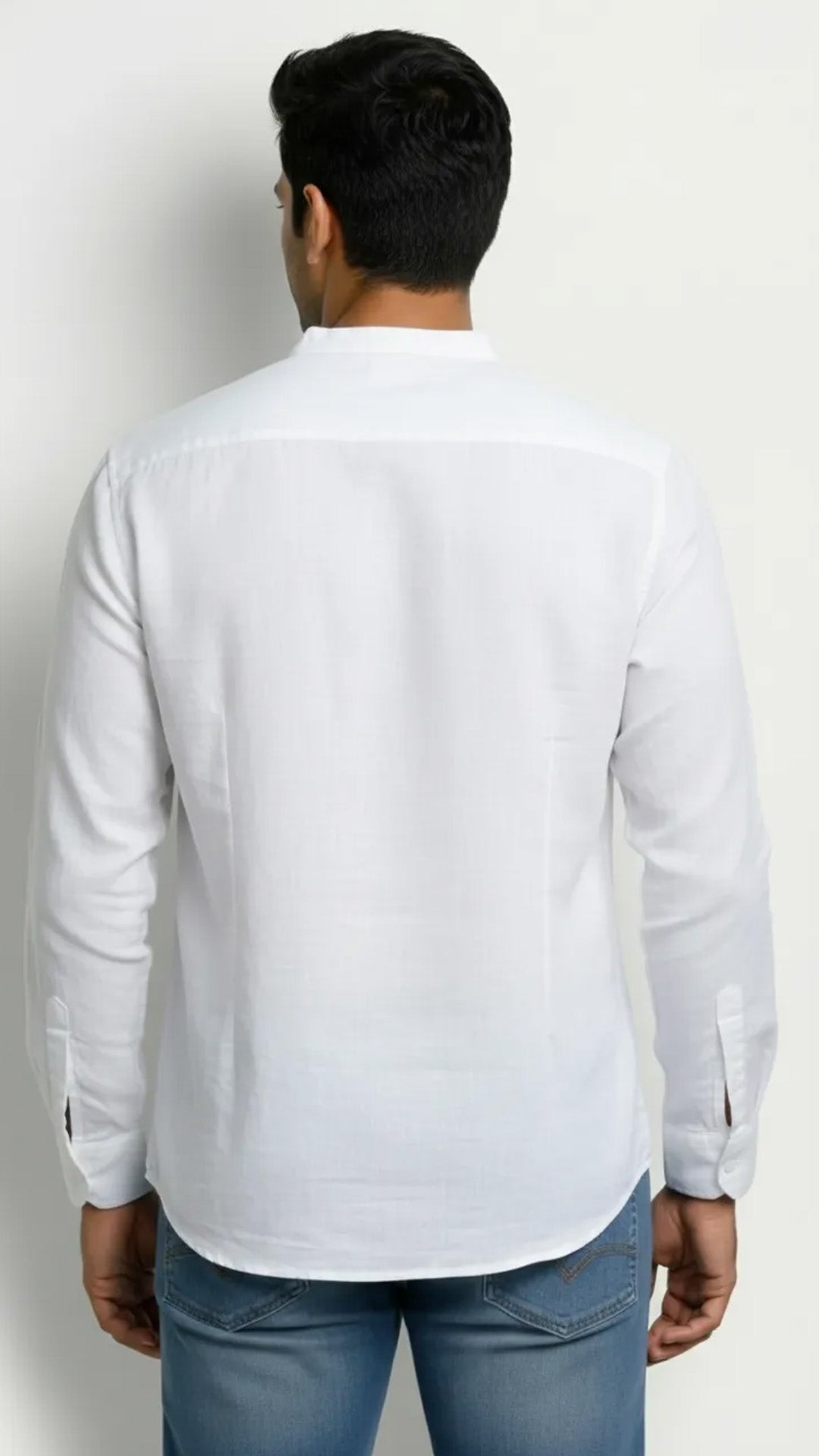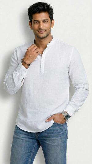 Slim Fit Cotton Linen Plain S/S Half Kurta