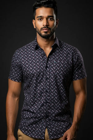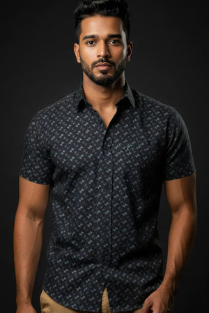 Slim Fit Dobby Printed S/S Shirt